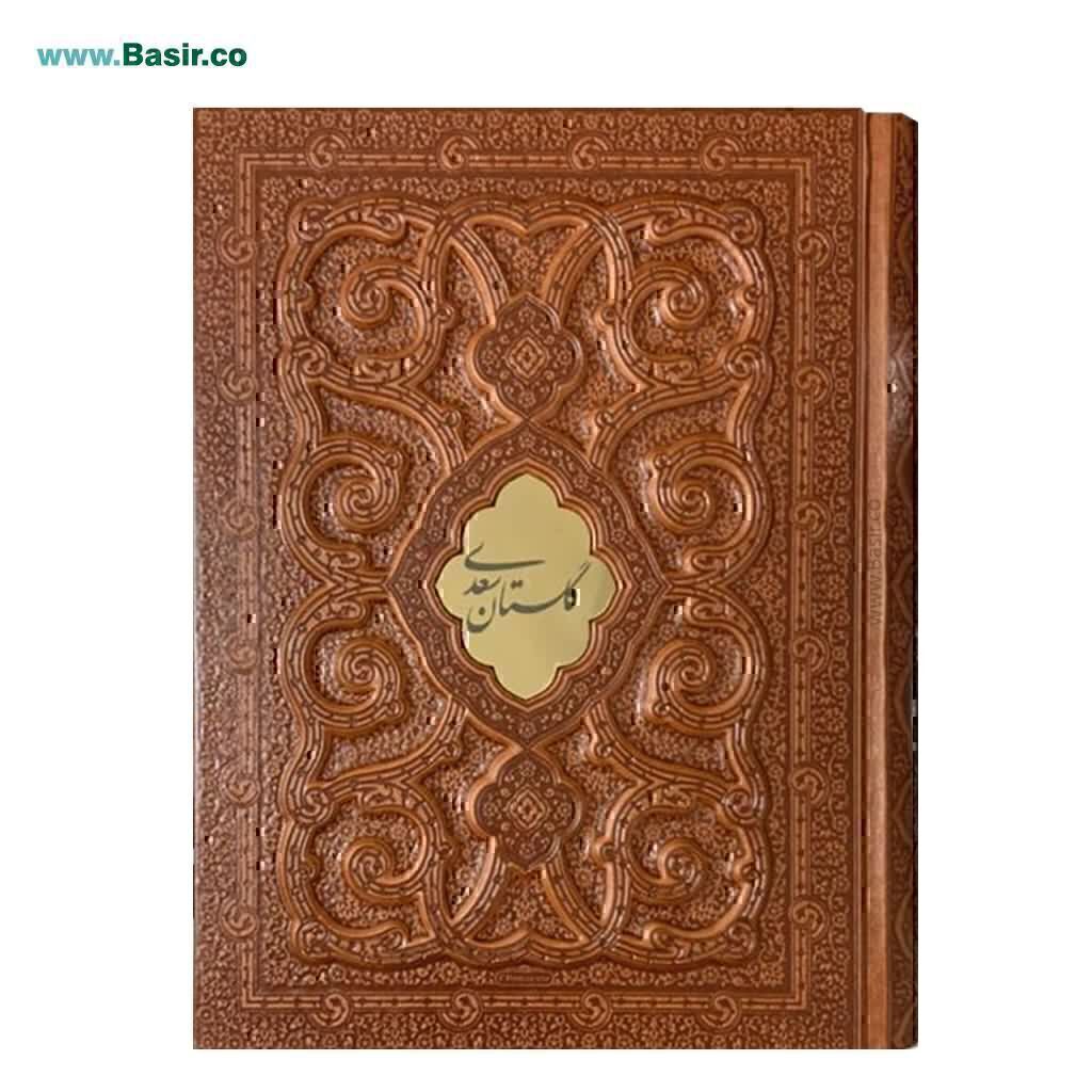 کتاب نفیس و معطر گلستان سعدی چرمی همراه با قاب بازشو