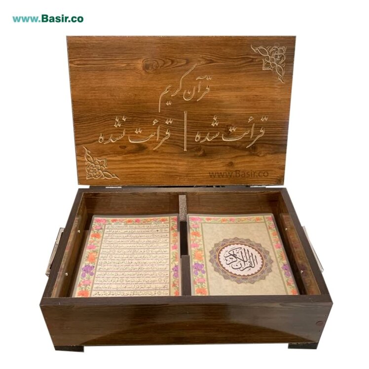 رحل لیزری همراه با پلاک رنگی با نوشته های اسماء متبرکه در رنگ های مختلف و استفاده جهت قرآن عروس و قرآن های نفیس در انداز های مختلف کاری بسیار نفیس