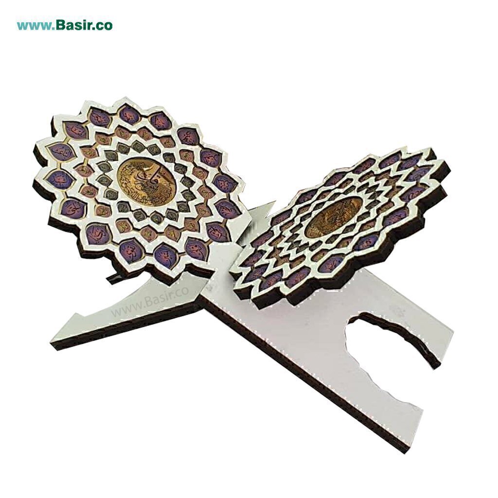 رحل لیزری همراه با پلاک رنگی با نوشته های اسماء متبرکه در رنگ های مختلف و استفاده جهت قرآن عروس و قرآن های نفیس در اندازه های مختلف کاری بسیار نفیس