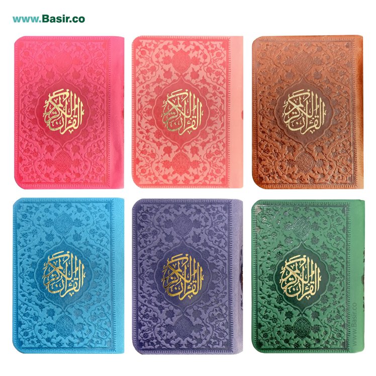 کتاب نفیس قرآن کریم قطع پالتویی جلد طرح چرم رنگی