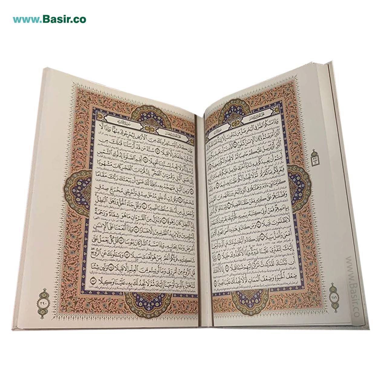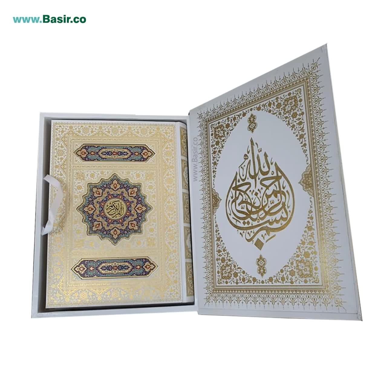 کتاب قرآن نفیس و معطر سفید پلاک رنگی در قطع رحلی