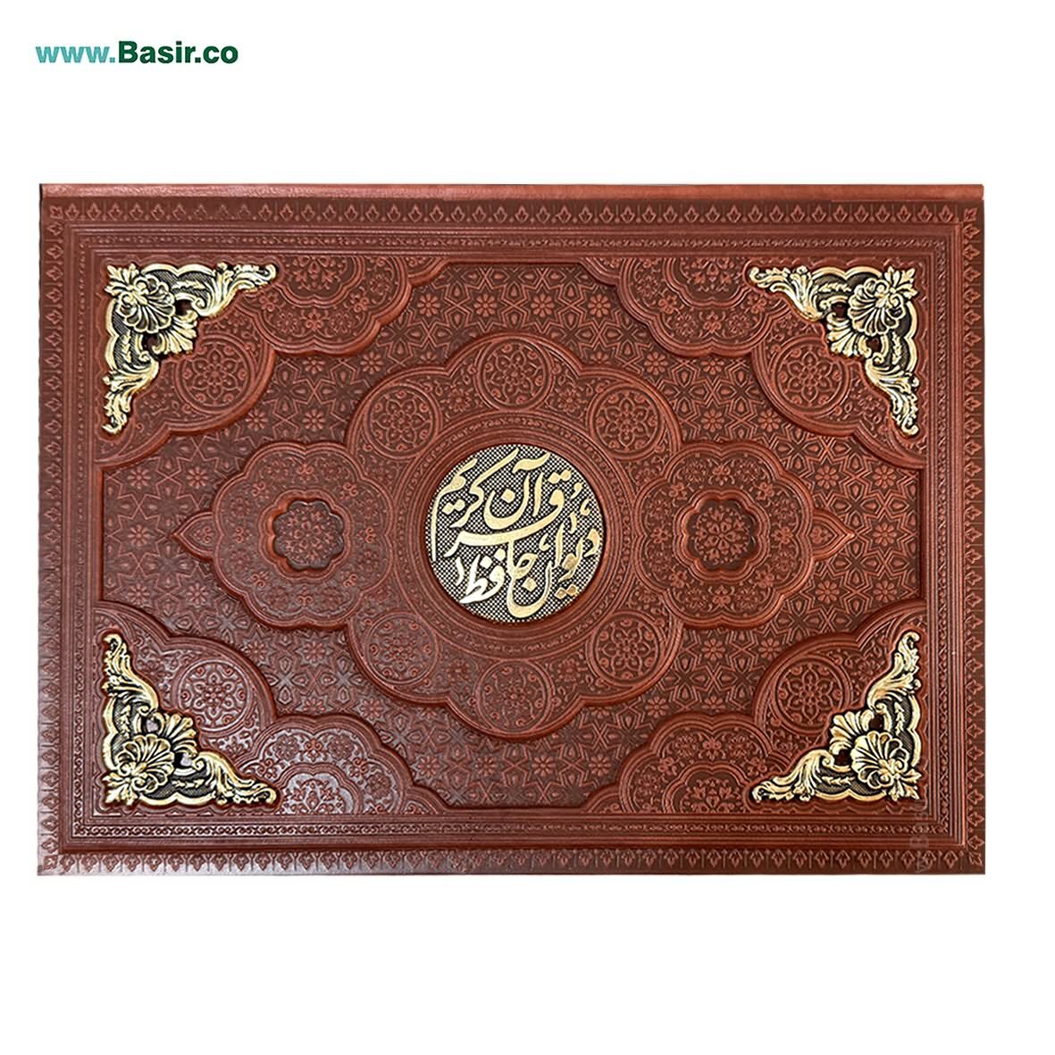 مجموعه نفیس و بسیار ارزشمند قرآن و حافظ چرم جیبی در کنار هم داخل یک عدد قاب بازشو طرح چرم و مس برجسته، این مجموعه نفیس توسط انتشارات نوین بصیر (مرکز قرآنی بصیر) در سراسر ایران با قیمت بسیار مناسب و تخفیف عالی توزیع می گردد.