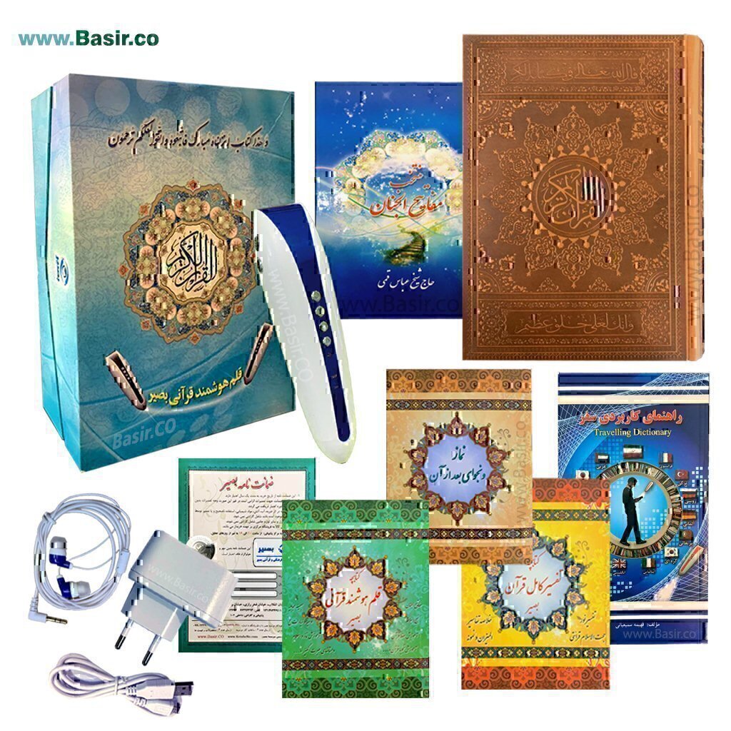 این بسته کامل ترین و آخرین بسته قلم قرآنی بصیر می باشد که به صورت ویژه توسط شرکت بصیر عرضه می گردد .این بسته همراه با قرآن وزیری کاملا رنگی (دارای ترجمه فارسی زیر)، کتاب منتخب مفاتیح درشت خط و کاملترین امکانات همراه با کیف طرح چرم با قلم هوشمند با کیفیت بسیار عالی و قابلیت به روز رسانی و استفاده از جدیدترین کتاب های تولید شده توسط موسسه بصیر گامی جدید در نسل قلم های هوشمند نهاد. این بسته از هر لحاظ مورد تائید شرکت بصیر است و نسبت به بسته های مشابه دارای کیفیت و امکانات عالی و بی نظیر است که توسط این موسسه با قیمتی مناسب و پشتیبانی عالی توزیع می گردد.