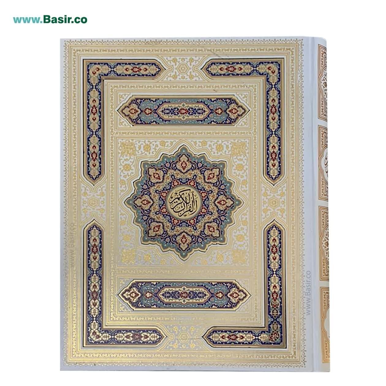 کتاب قرآن عروس نفیس گلاسه همراه با قاب بازشو پلاک رنگی