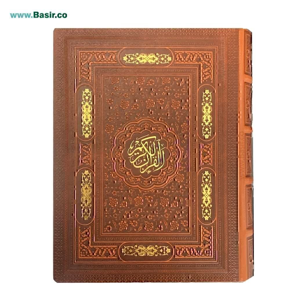 کتاب قرآن نفیس بدون ترجمه فارسی همراه با جلد و قاب بازشو (جعبه) چرمی با طرح برجسته زیبا و کیفیت عالی، خط عثمان طه و با کاغذ معطر مارگانو آلمان طرح ابر و باد به صورت ویژه توسط موسسه فرهنگی بصیر به صورت تکی و یا در تعداد بالا توزیع میگردد.
