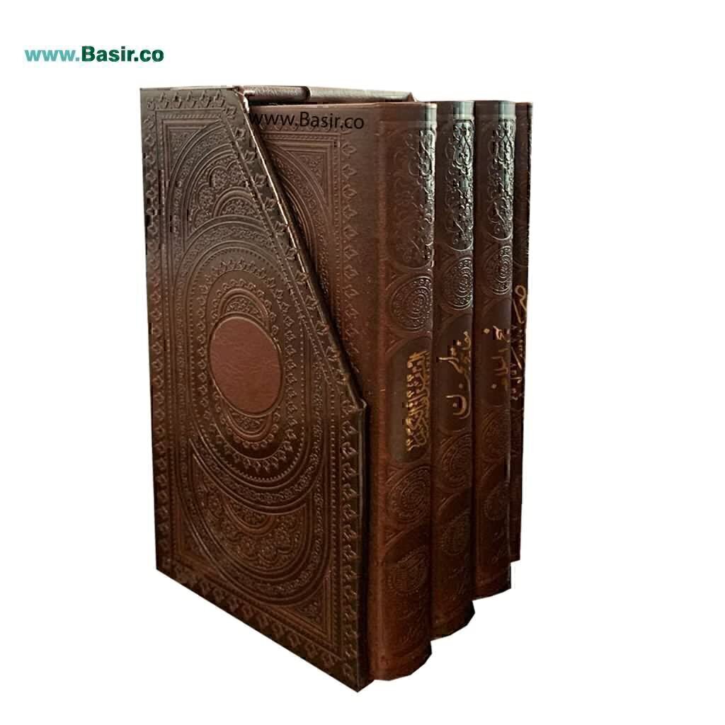 مجموعه 4 جلدی در اندازه پالتویی شامل قرآن کریم نفیس، مفاتیح الجنان، صحیفه سجادیه و نهج البلاغه همراه با جلد چرمی (ترمو) داخل قاب بسیار زیبا با کاغذ پوست پیازی.