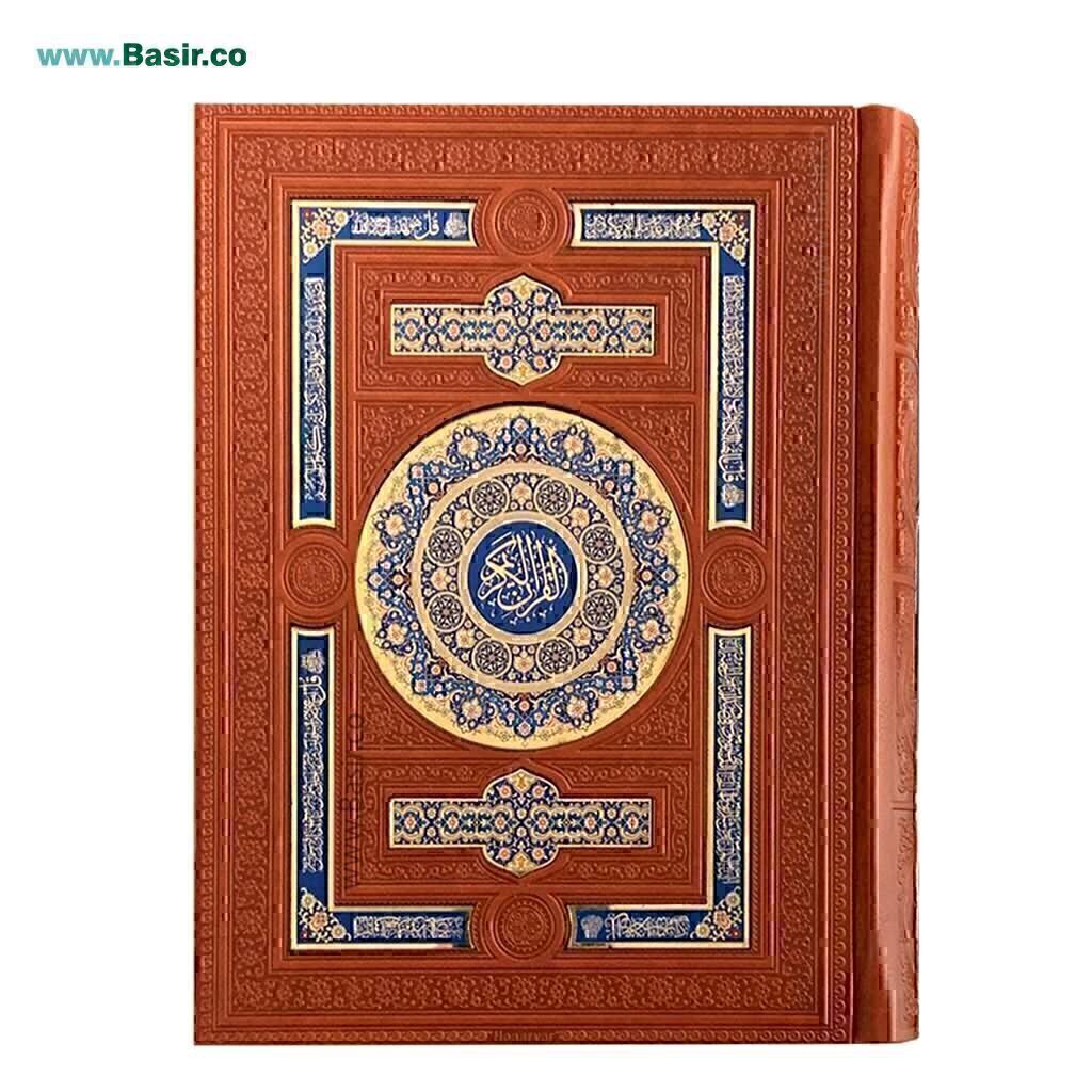 کتاب قرآن نفیس چرمی همراه با قاب بازشو (قطع وزیری)