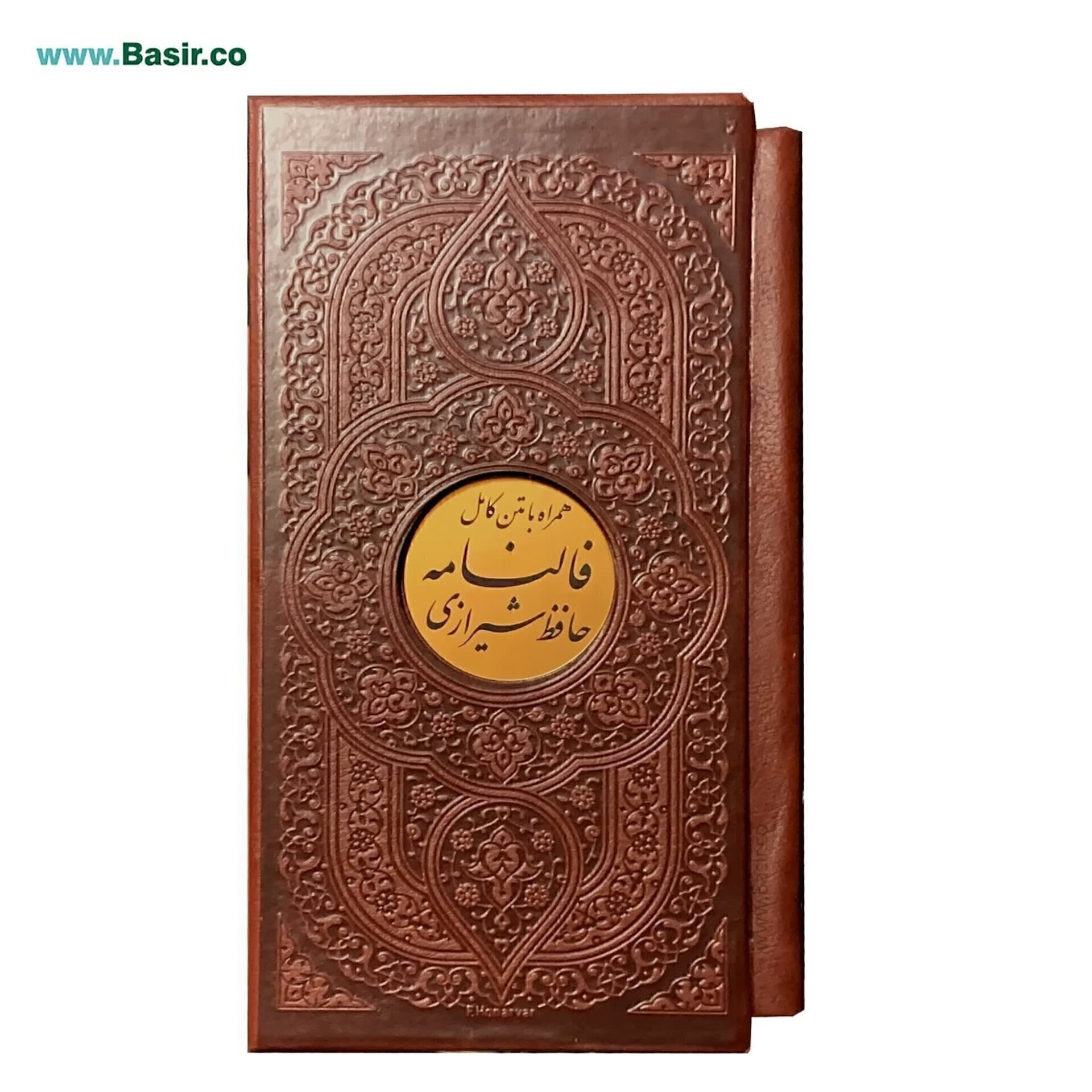 کتاب دیوان حافظ قطع پالتویی همراه با قاب دارای فالنامه در پایین تمام صفحات به صورت کاملا رنگی و با جلد چرمی (ترمو) نفیس در قطع کوچک پالتویی چاپ و توزیع گردیده است.