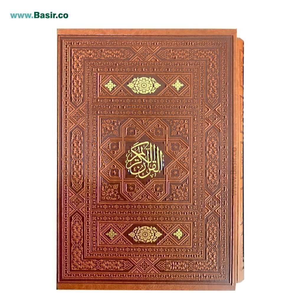 کتاب قرآن نفیس جلد چرمی همراه با قاب کشویی