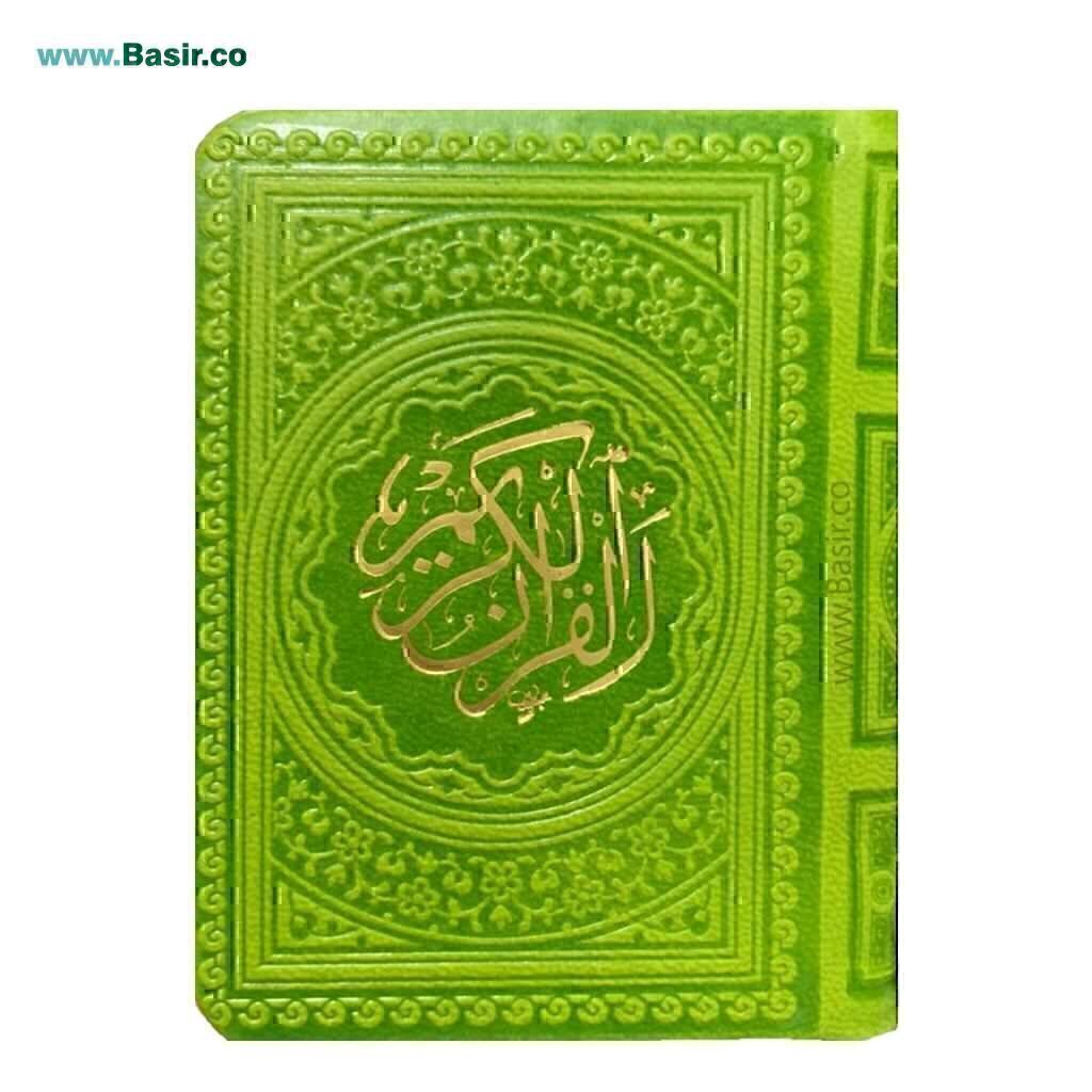 کتاب قرآن رنگی جلد سبز در اندازه خیلی کوچک لقمه‌ای