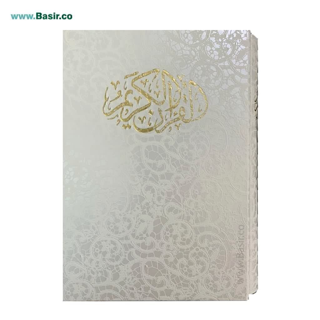 کتاب قرآن سفید همراه با قاب کشویی جلد گالینگور (قرآن عروس)