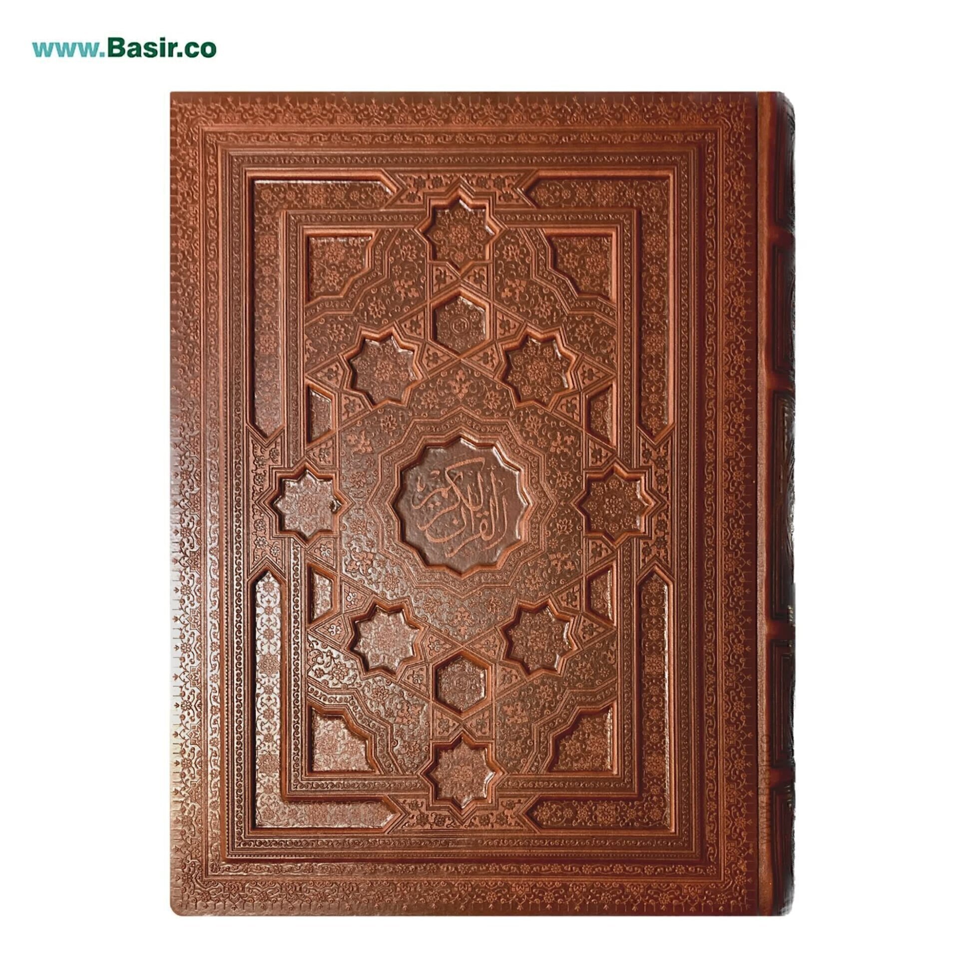 فقط ۱ عدد باقیمانده کتاب قرآن نفیس بدون ترجمه همراه با جعبه (قاب بازشو) چرمی طرح برجسته
