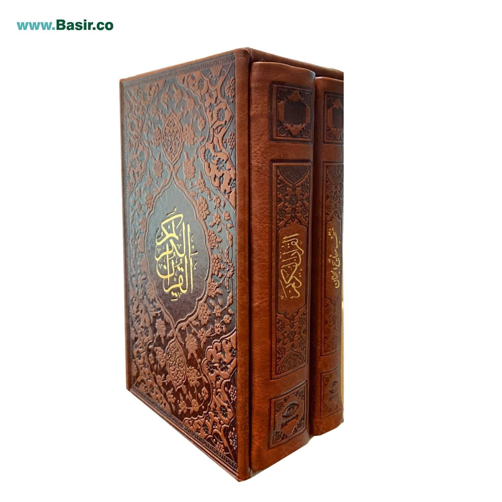 مجموعه دو جلدی قرآن و مفاتیح قطع پالتویی بصیر با قاب کشویی چرمی