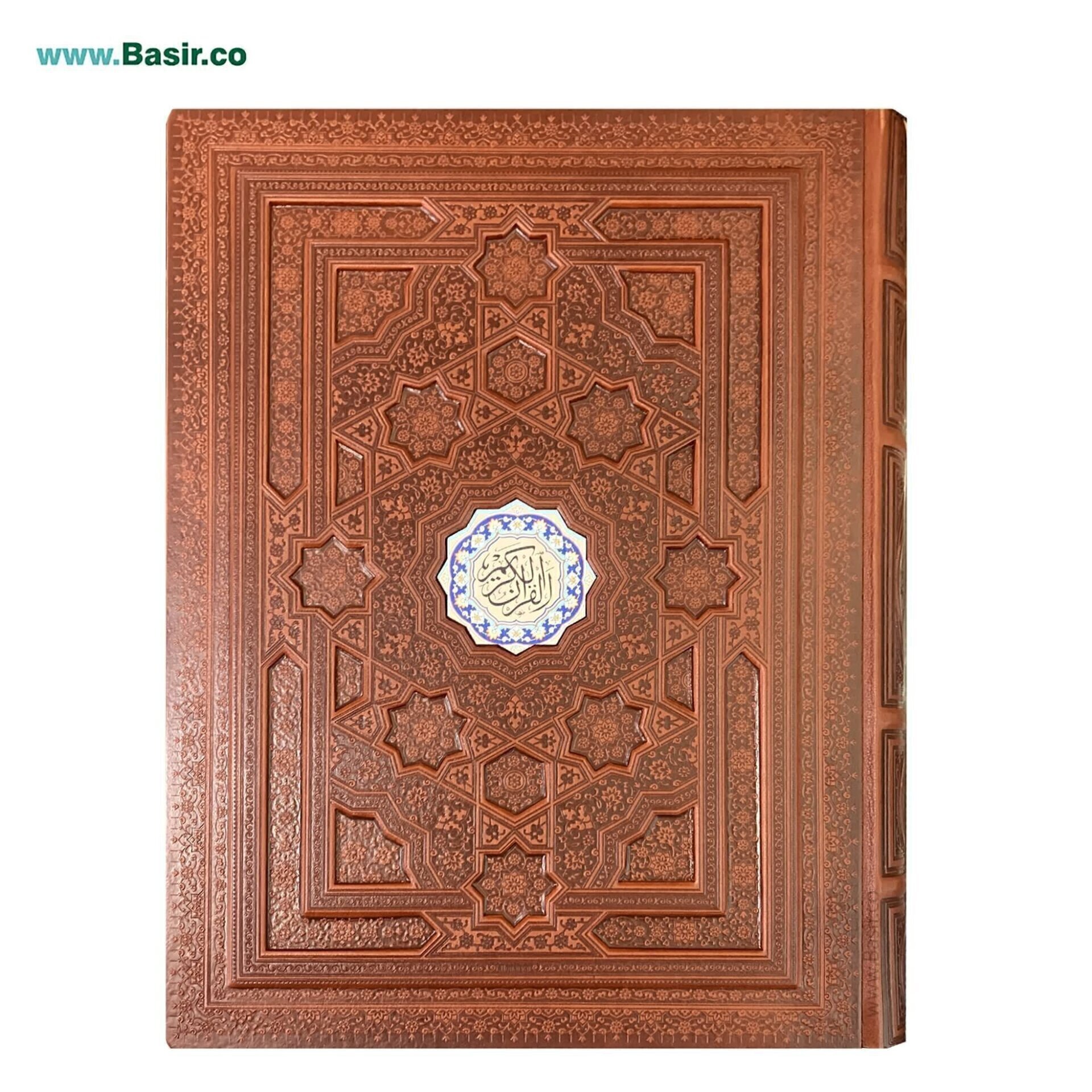 کتاب نفیس قرآن چرمی برجسته همراه با جعبه قطع رحلی