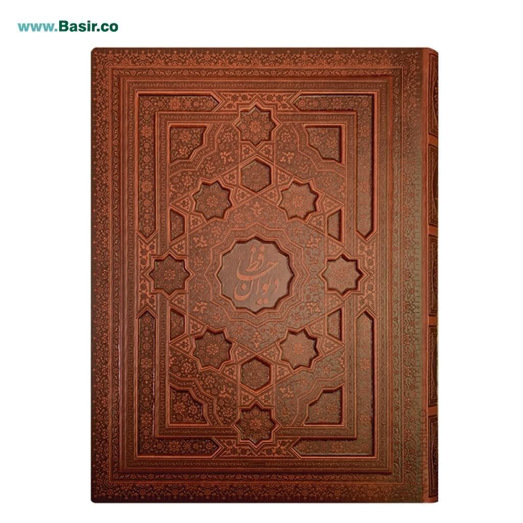 کتاب نفیس دیوان حافظ جلد چرمی (ترمو) با کاغذ گلاسه و چاپ رنگی و کیفیت عالی همراه با جعبه (قاب بازشو) طرح برجسته در قطع بزرگ رحلی توزیع می گردد.