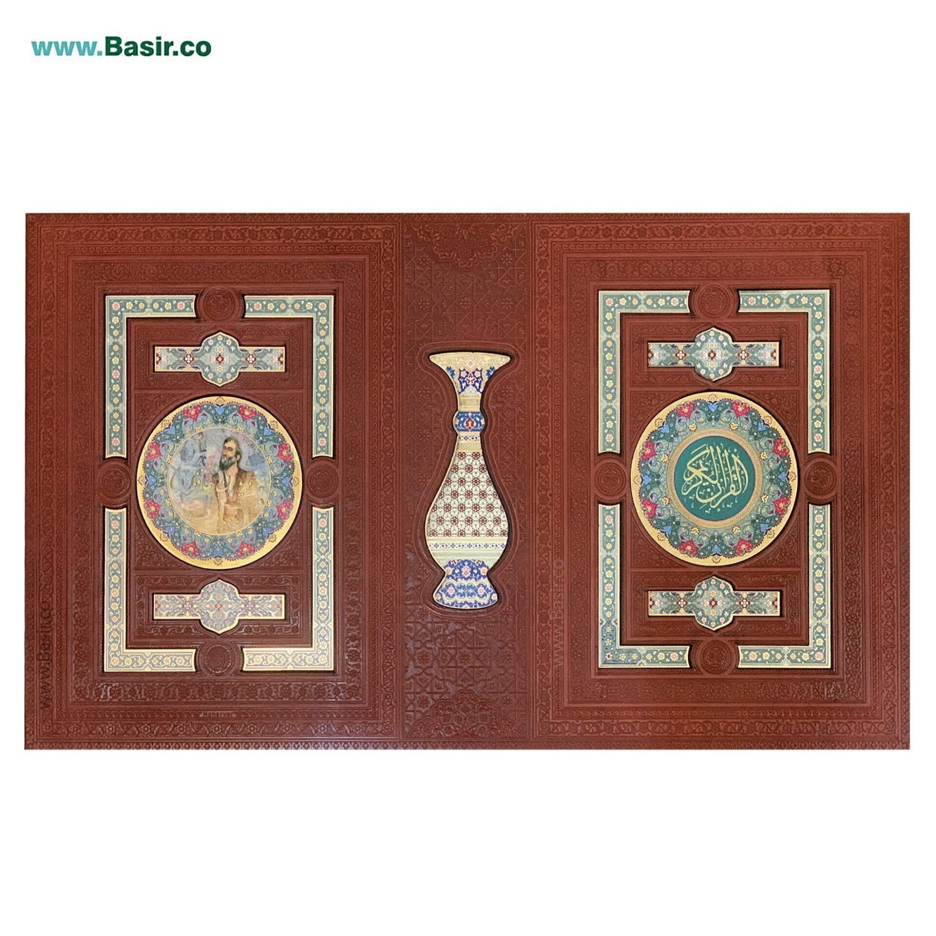 مجموعه نفیس قرآن و حافظ چرمی با گلدان خاتم همراه با جعبه