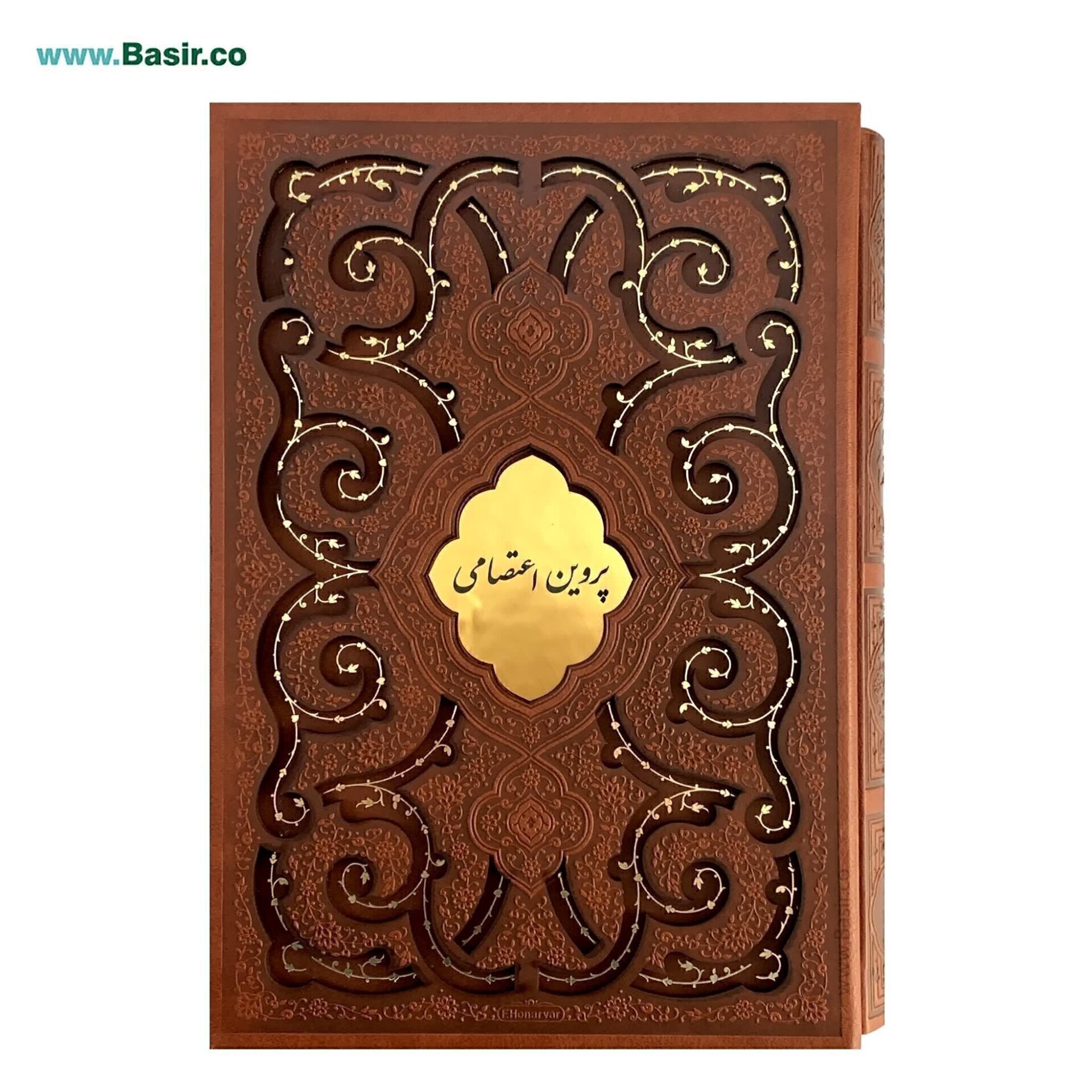 کتاب نفیس پروین اعتصامی چرمی همراه با قاب کشویی لیزری