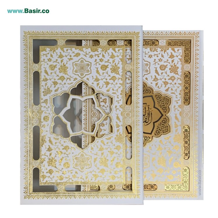 کتاب نفیس قرآن سفید جلد گالینگور همراه با قاب کشویی برش لیزری در قطع جیبی و چاپ رنگی زیبا که با کیفیت عالی و طرح زیبا توسط انتشارات نوین بصیر به سراسر ایران با تخفیف های ویژه بر اساس تعداد خرید ارسال می گردد.