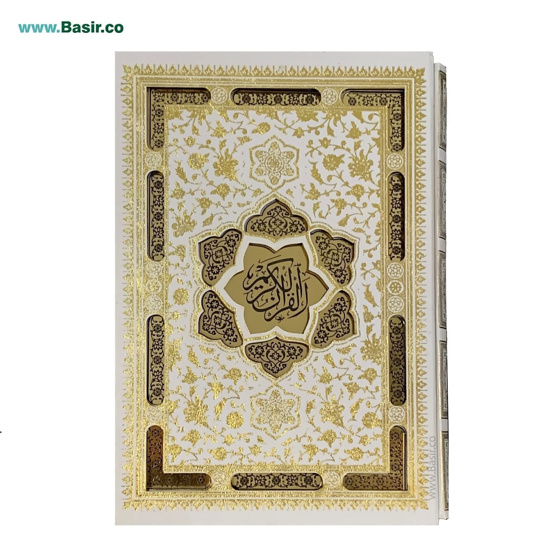 کتاب قرآن نفیس سفید با دفترچه رويداد و قاب کشويي کاغذ تحریر