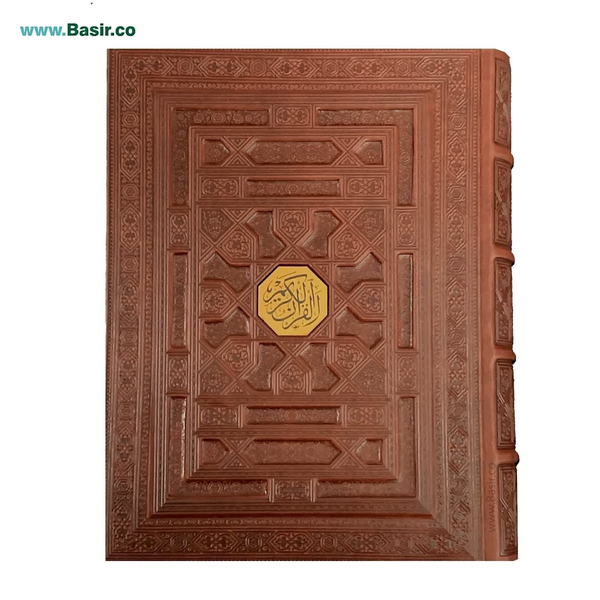 کتاب نفیس قرآن کریم با کاغذ گلاسه جلد چرمی با قاب بازشو (صندوقی) چرمی طرح برجسته