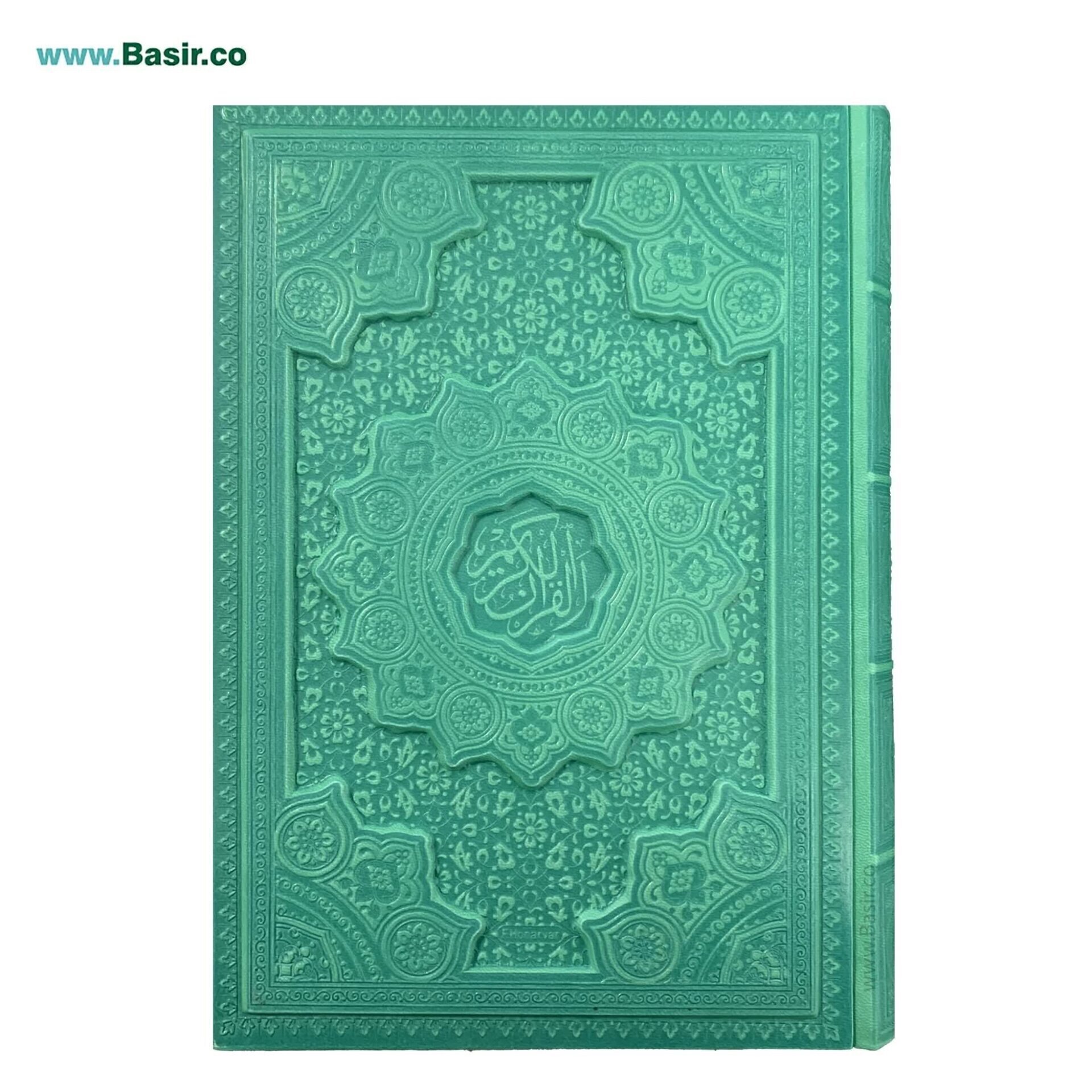 کتاب نفیس قرآن جلد رنگی لبه رنگی طرح برجسته در قطع وزیری