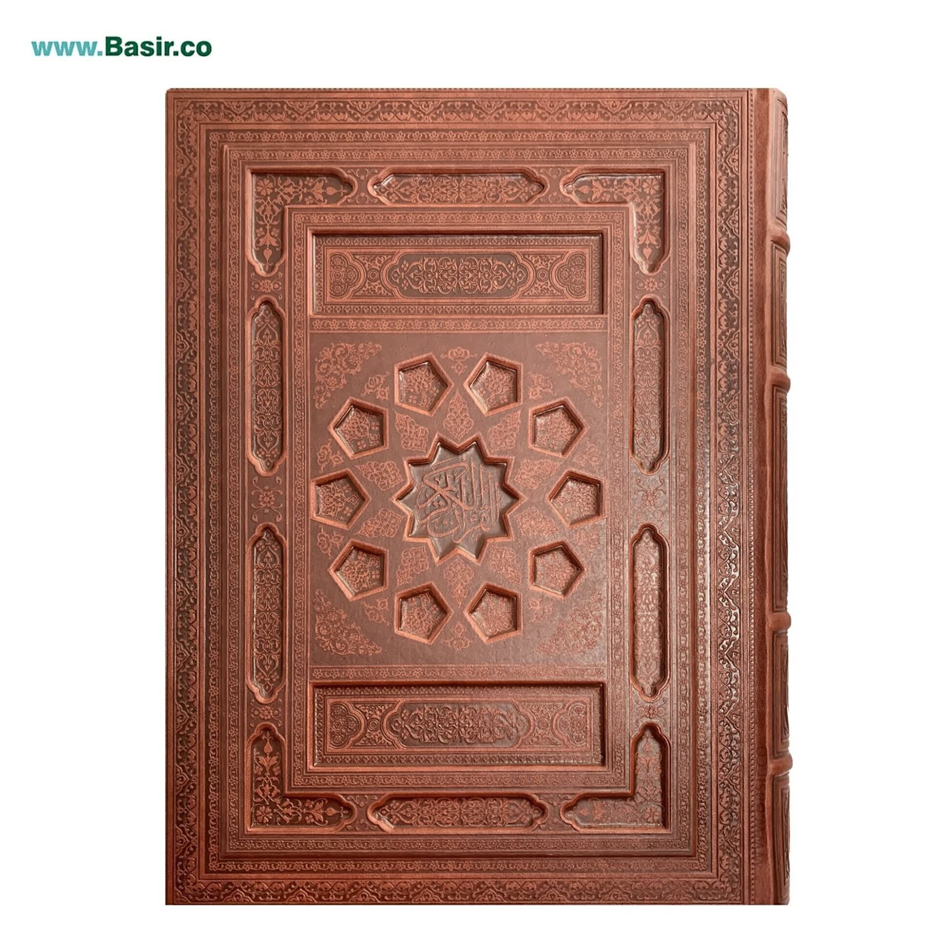 کتاب قرآن بدون ترجمه بسیار نفیس در قطع بزرگ رحلی با تذهیب زیبا بر روی کاغذ معطر مارگانو طرح ابر و باد با قاب بازشو (جعبه) چرمی طرح برجسته به صورت تک و یا در تعداد بالا توسط انتشارات نوین بصیر در سراسر ایران با کیفیت عالی توزیع می گردد.
