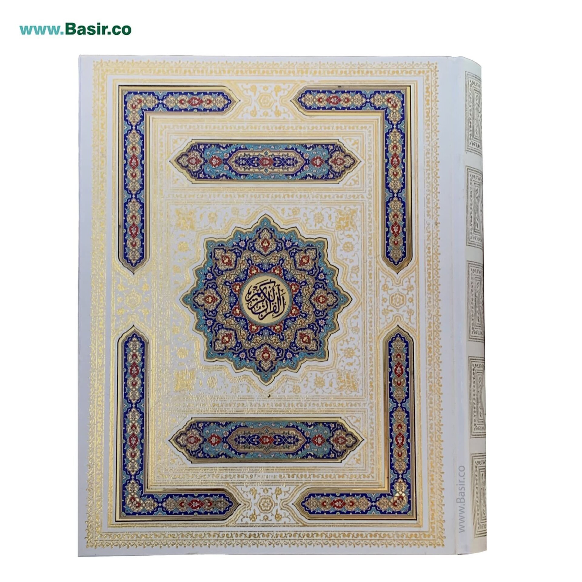 کتاب قرآن سفید (قرآن عروس) پلاک رنگی، جلد سفید بسیار زیبا همراه با پلاک رنگی و کاغذ گلاسه