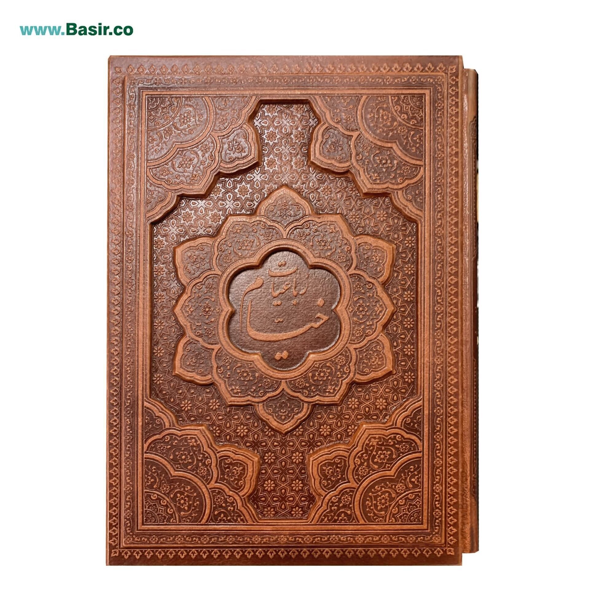کتاب رباعیات خیام نفیس همراه با قاب کشویی برجسته چرمی (ترمو) .