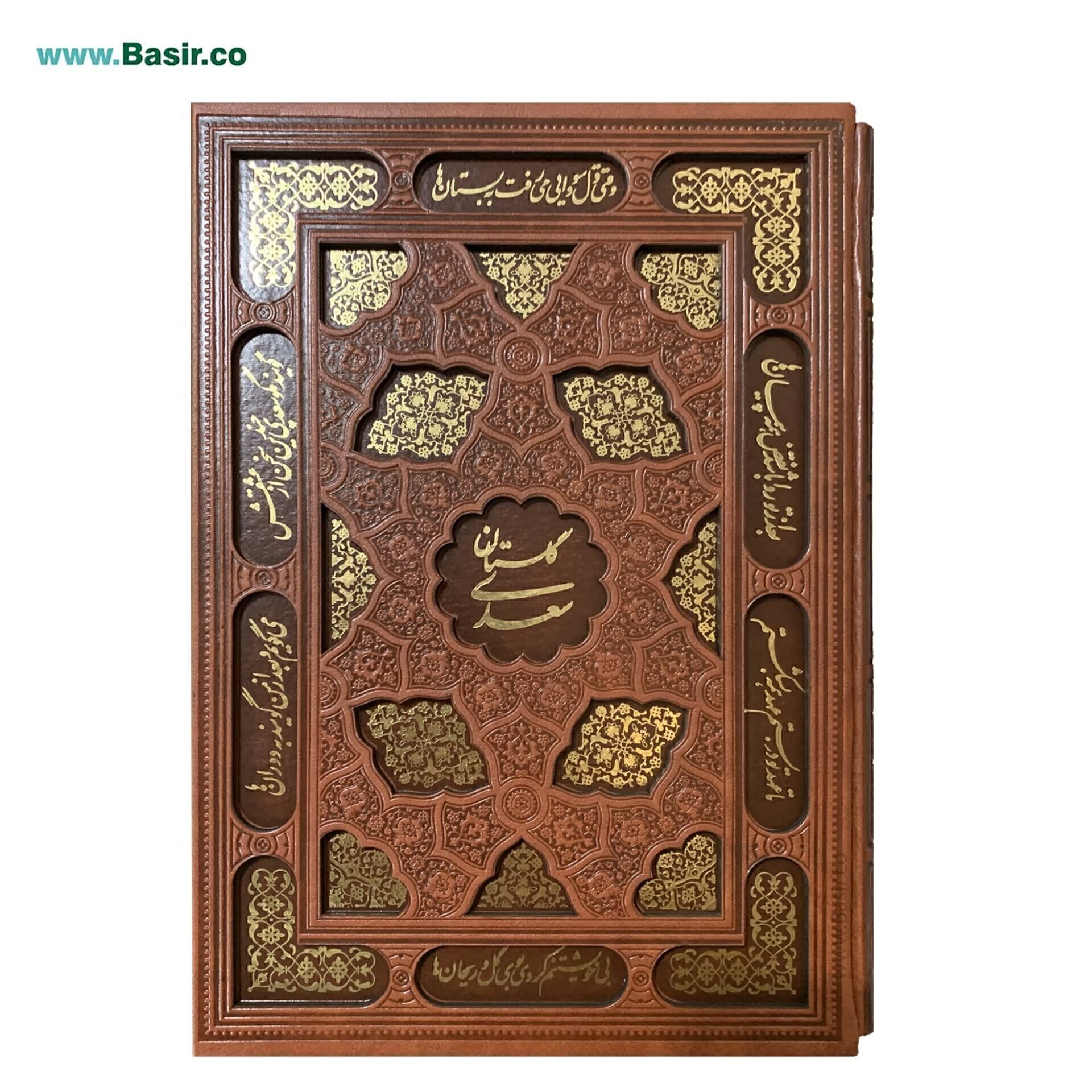 مجموعه دو جلدی کتاب نفیس بوستان و گلستان سعدی همراه با جعبه صندوقی (قاب بازشو) طرح چرم با برش لیزری بر روی قاب دارای تذهیب زیبا همراه با کاغذ گلاسه و چاپ کاملا رنگی زیبا در قطع وزیری بوده که توسط انتشارات نوین بصیر با تخفیف های عالی در سراسر ایران توزیع می گردد.
