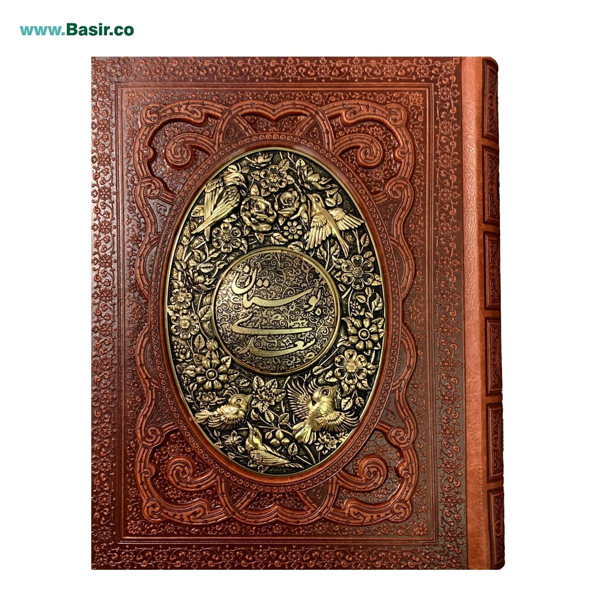 کتاب نفیس بوستان سعدی چرمی طرح مس برجسته همراه با جعبه