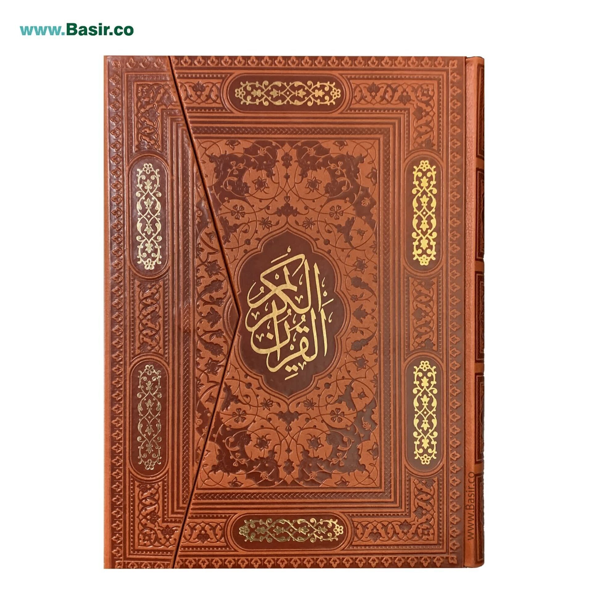 کتاب قرآن نفیس جلد چرمی درب پاکتی (سه لتی) چاپ رنگی کاغذ گلاسه با کیفیت عالی