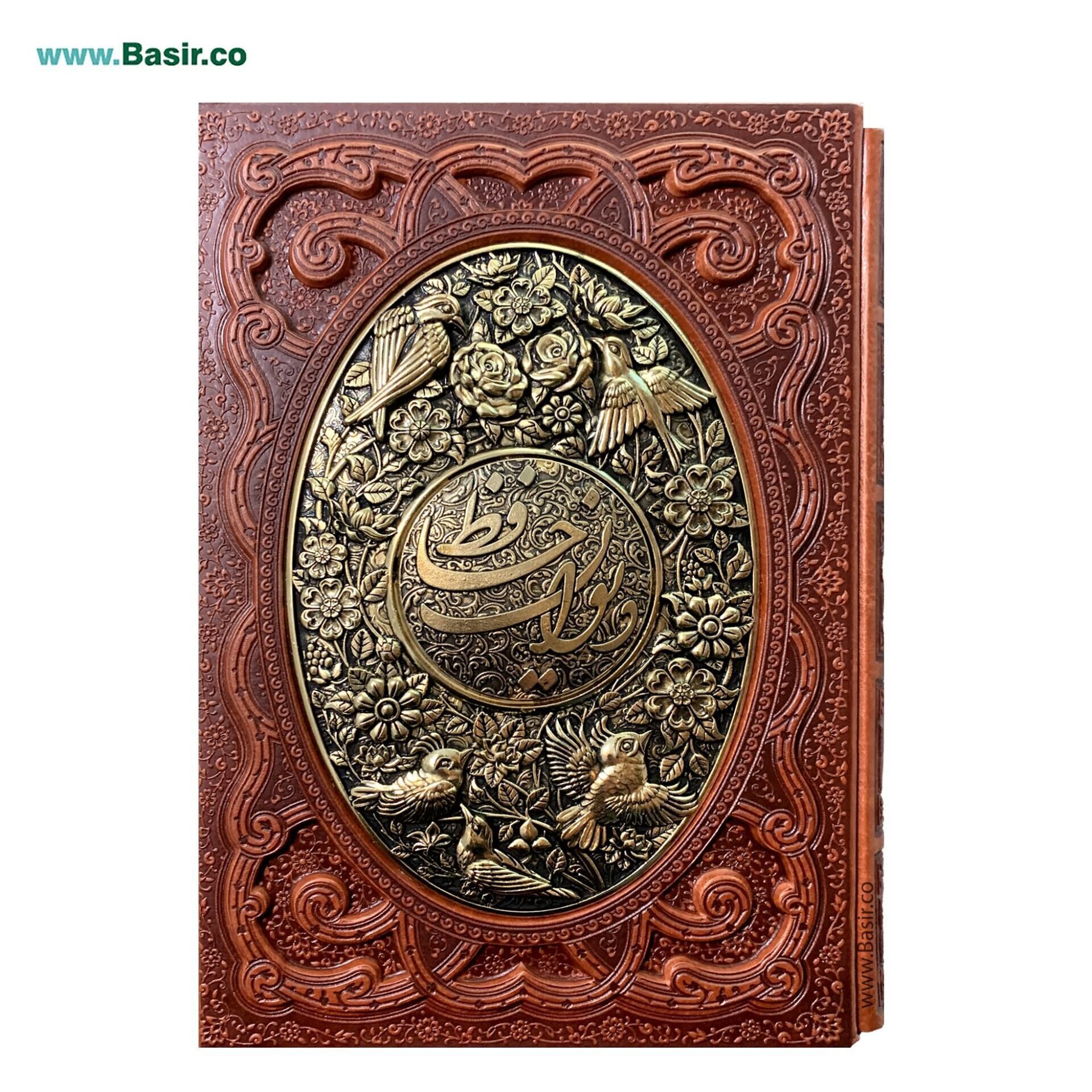کتاب نفیس دیوان حافظ چرمی همراه با قاب کشویی طرح چرم و مس بسیار زیبا