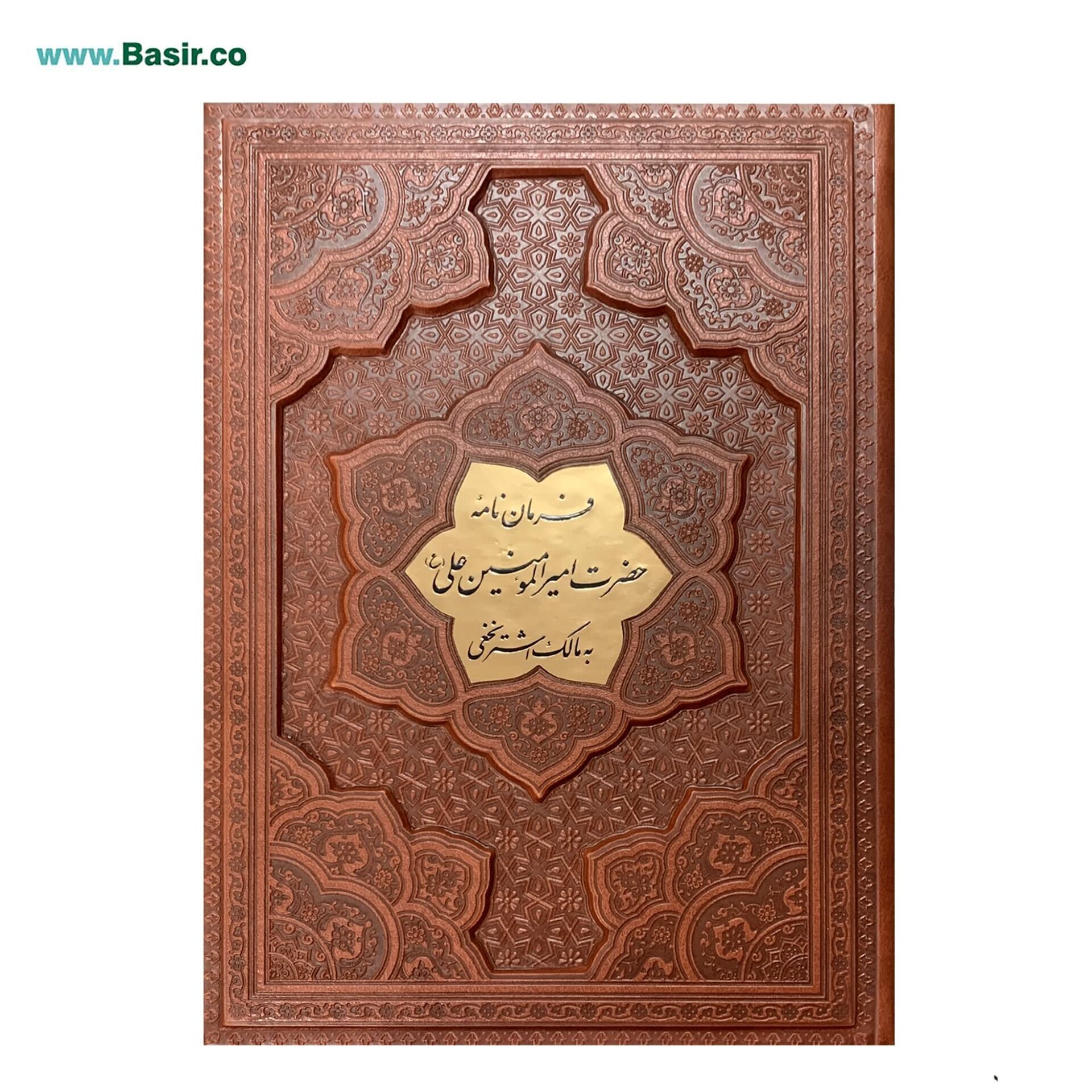 کتاب نفیس فرمان نامه حضرت علی (ع) به مالک اشتر با چاپ کاملا رنگی و بسیار زیبا بر روی کاغذ گلاسه با جلد برجسته چرمی زیبا