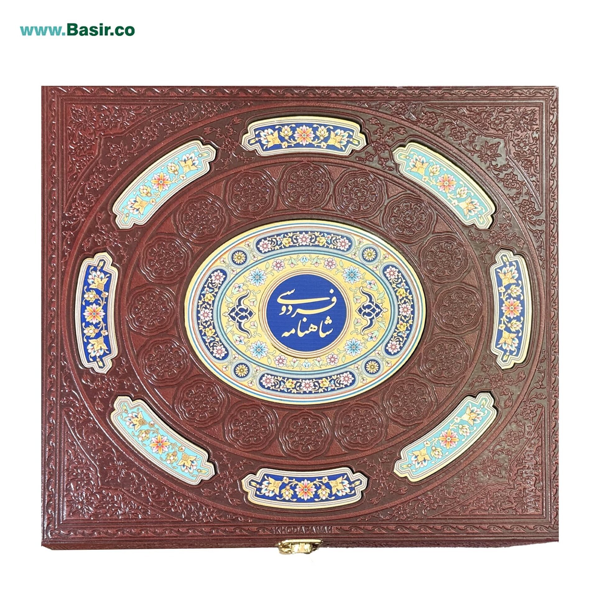 مجموعه نفیس و زیبای کتاب شاهنامه چرمی (ترمو) همراه با گلدان مس الماس تراشداخل یک عدد قاب چرمی با پلاک رنگی که هدیه ای زیبا و ارزشمند برای تمامی فراد به شمار می رود. این مجموعه ارزشمند با تخفیف بسیار عالی توسط موسسه بصیر در سراسر ایران به صورت مستقیم عرضه می گردد.