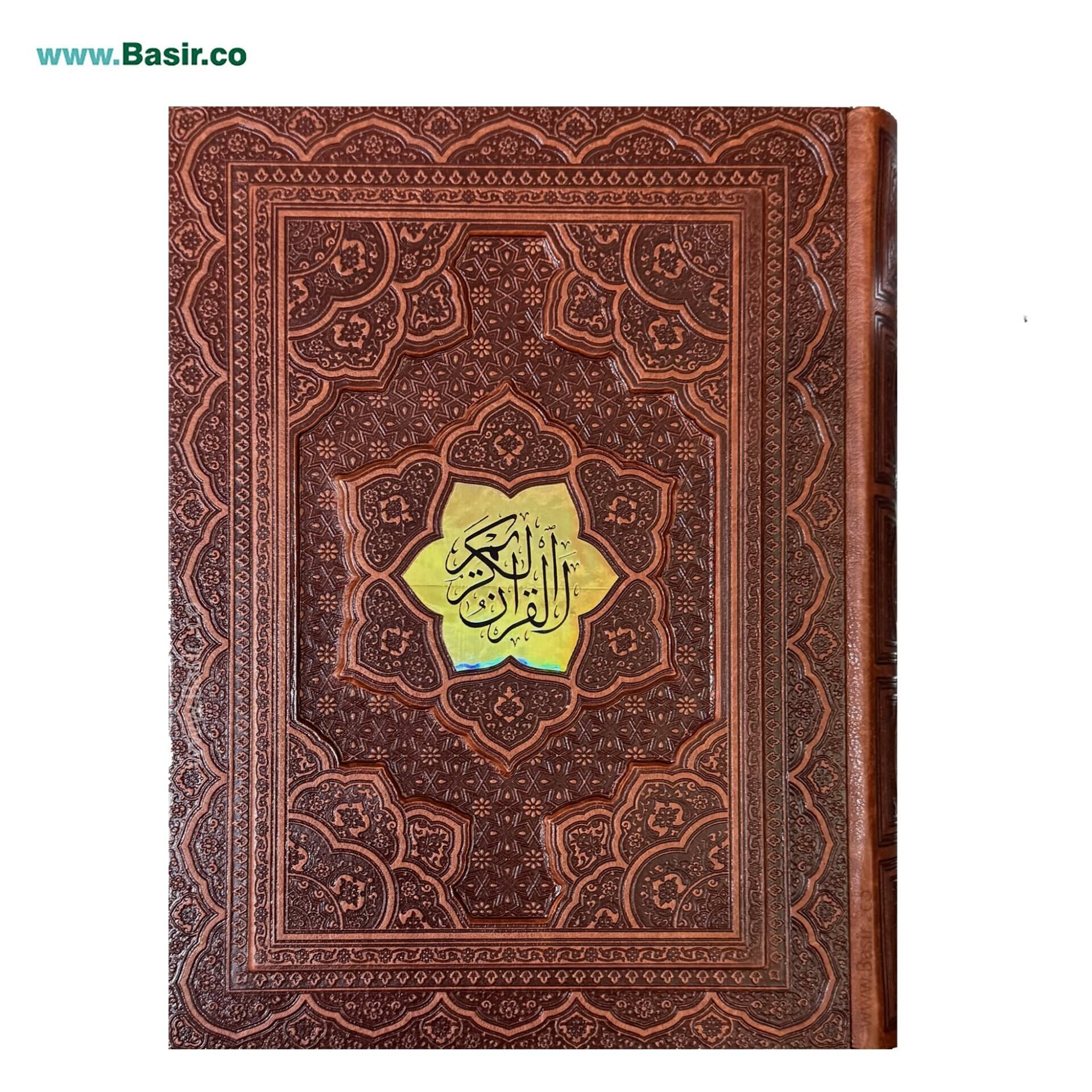 کتاب نفیس قرآن چرمی برجسته پلاک دار همراه با جعبه