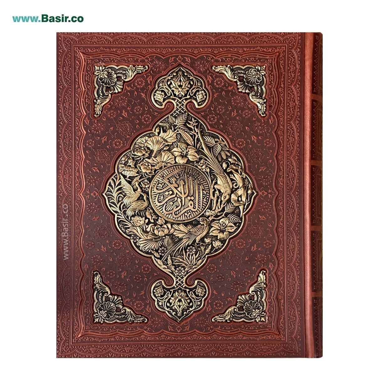 کتاب نفیس قرآن چرمی طرح مس همراه با جعبه قطع رحلی