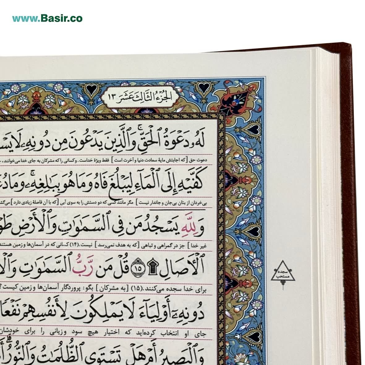 کتاب قرآن نفیس بسیار زیبا جلد چرمی (ترمو) با پلاک رنگی همراه با قاب کشویی چرمی لیزری زیبا خط عثمان طه با ترجمه فارسی در قطع وزیری با چاپ رنگی زیبا و کاغذ گلاسه کیفیت عالی.