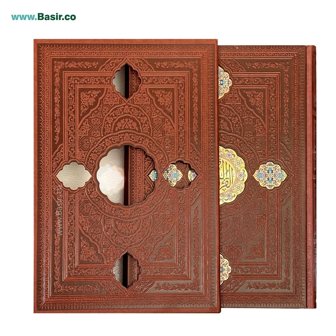 کتاب قرآن نفیس چرمی پلاک دار همراه با قاب کشویی