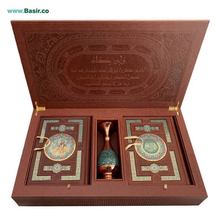مجموعه دو جلدی قرآن و حافظ قطع پالتویی پلاک رنگی چرمی قاب کشویی