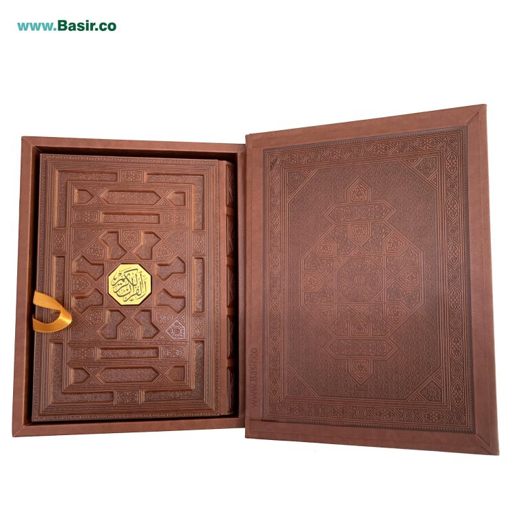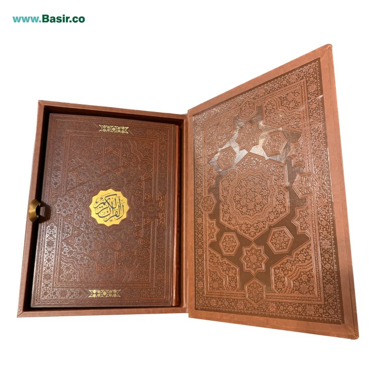 کتاب قرآن نفیس چرمی پلاک دار جعبه لپتاپی قطع رحلی